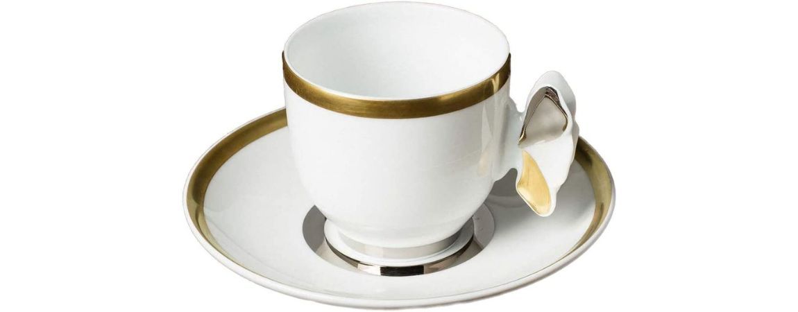 The Cocoonalist: Taza de Café y Platillo de Porcelana Limoges Decorados con Oro Amarillo de 24 K y Platino para una Experiencia Sofisticada